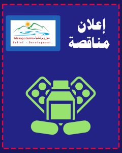 تعلن جمعية موزوبوتاميا عن دعوتها للشركات والمستودعات المؤهلة والمتخصصة في مجال الأدوية والمستلزمات الطبية لتقديم عروضها لتنفيذ مشروع توريد أدوية ومستلزمات طبية لمدة ستة أشهر متتالية، على أساس توريد شهري او اكثر، في مدينة اللاذقية، وذلك وفقاً للشروط الفنية والإدارية الموضحة في وثائق طلب العروض.