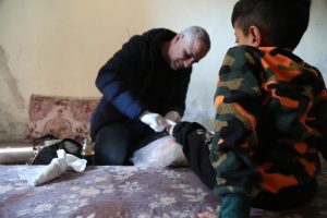 Ekîba pizîşkî ya Komeleya Mezopotamyayê, rewşa tenduristî ya zarokekî 10 salî yê koçberên Efrînê li Hesekê dişopîne; bi rêya pakirin û dermankirina rojane ya lingê wî yê şekirê (Diabetes), ji bo rêgirtina li nexweşiyê û başbûna rewşa wî.